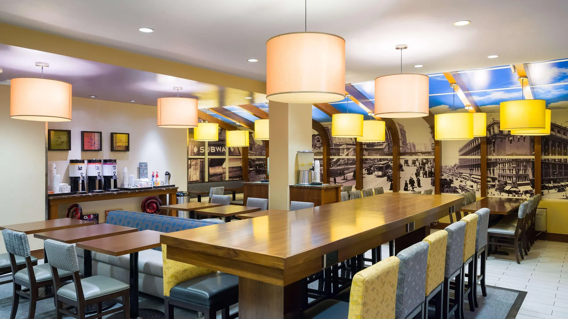 Les options de restauration d'Hampton Inn Madison Square Garden comprennent 3 restaurants. Vous pourrez profiter du snack bar sur place. Il bar vous accueille également avec une télé. Servant des repas américains, Bubba Gump Shrimp Co se trouve à 13 minutes à pied de cet hotel.